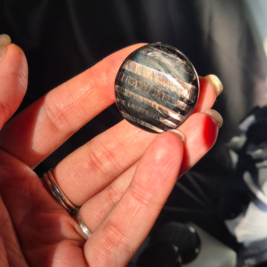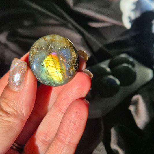 A crystal amulet (also known as "buttons") are small, flat an round shaped, making them easy to take with you on a daily basis, work with during healing sessions or make grids with.