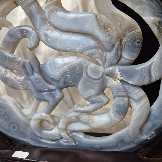 Blue agate ninetail fox on stand 2