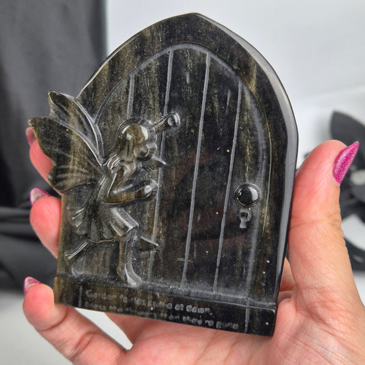 Silver sheen obsidian fairy door 3