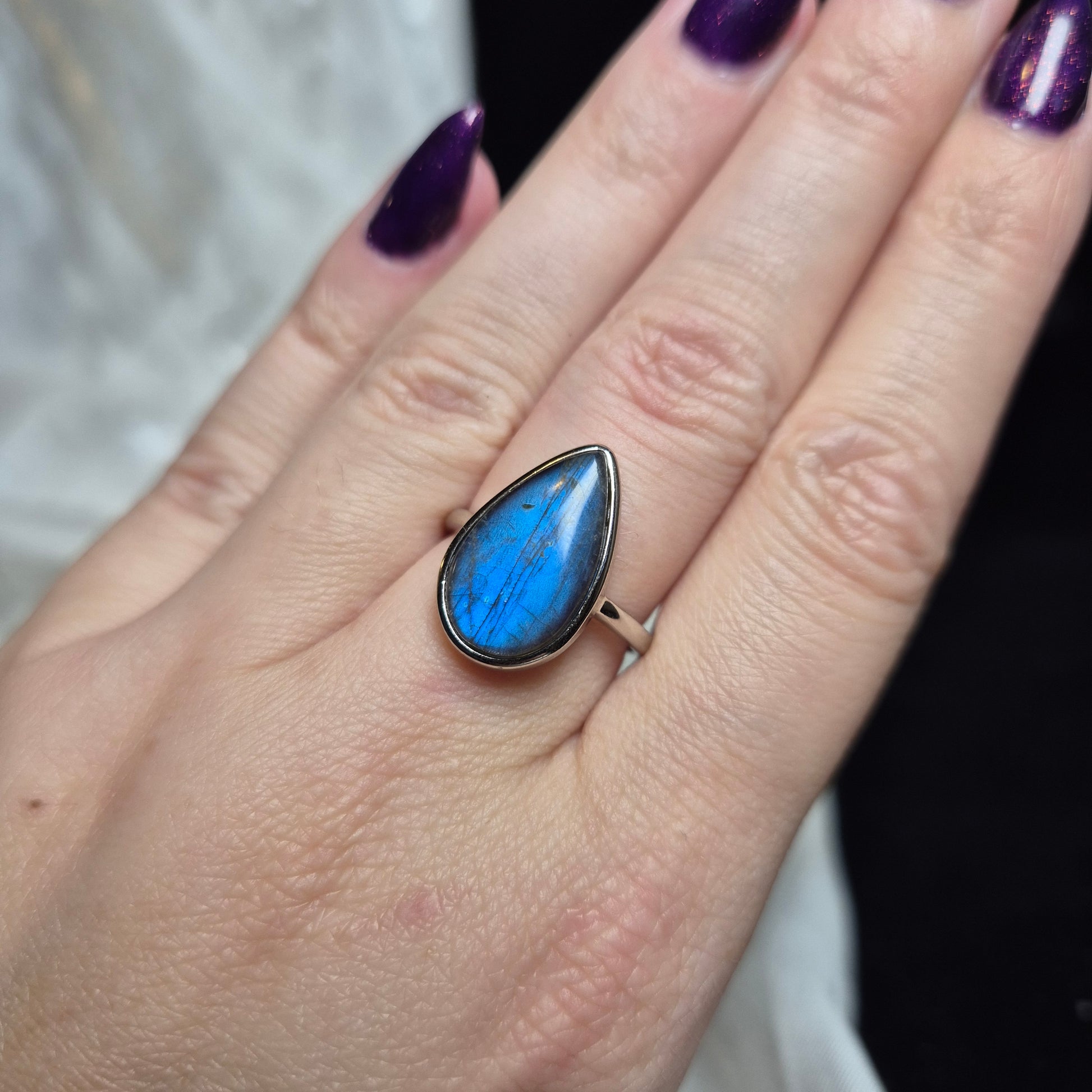 labradorite ring droplet