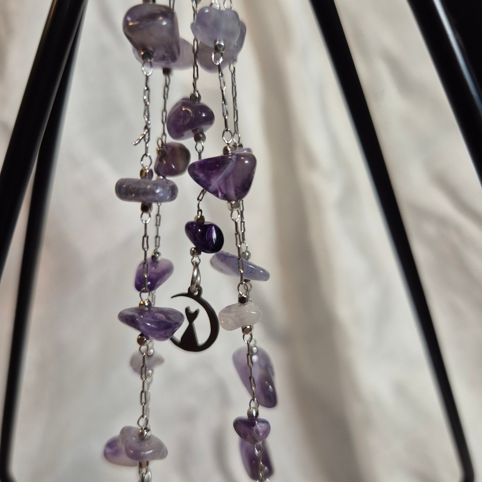 28.5 cm hight, silver net, amethist chips